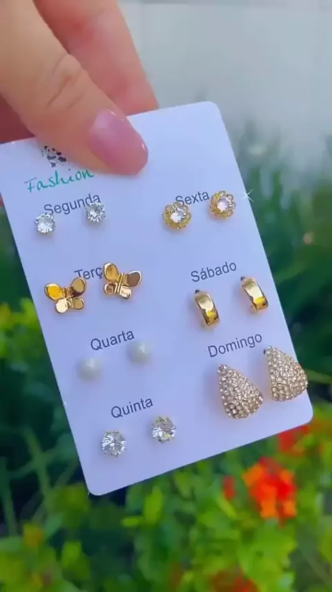 kit com 7 Pares Brincos Feminino Semaninha 1.372