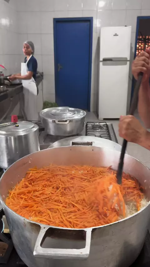 Hoje foi dia de fazer 5kg de arroz soltinho com cenoura aqui na escola 🍚🥕 Tudo feito com muito carinho pra alimentar nossas crianças 💛 Mostrei o passo a passo de um arroz bem soltinho, simples e cheio de sabor — daquele jeitinho que a gente faz todos os dias na cozinha da escola. #merendaescolar #comidadaroca #arrozsoltinho #cozinhacomamor #vidanaroça