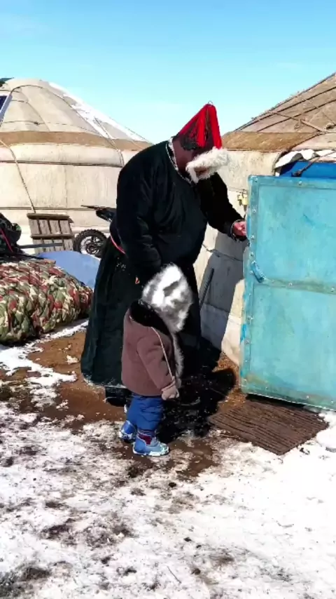 Independentemente de quão difícil seja, estou disposto a criar a felicidade que pertence a Taotao, apenas mantenha um sorriso em seu rosto # mongolia # Countrylife # culture # family # fatherson # daxiandotao # couple # eating