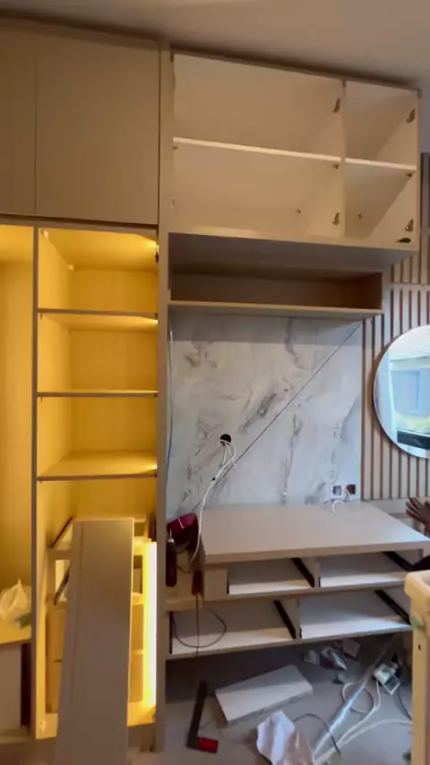 on progress finishing 🥰😍🤩🥳🔥#bacdroptvminimalis #bacdroptv #livingroom #interiorruangtamu #lemaripakaian #lemari #kitchenbersih #mejatvmurah #bacdroptvminimalis #dipankasur #dipan