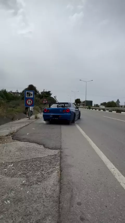 Nissan Skyline GTR-R34 queimando pneus