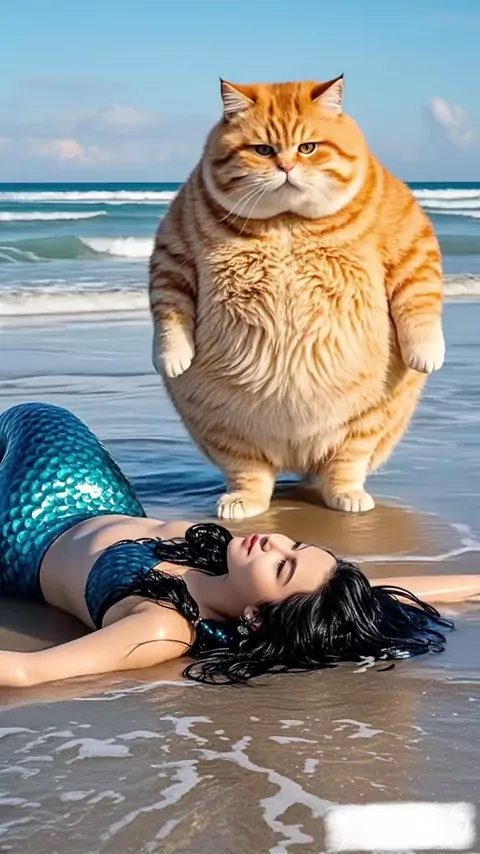 The cat saves the mermaid” #HeroCat #BraveFeline #CatSavesMermaid #FantasyRescue #FelineHero