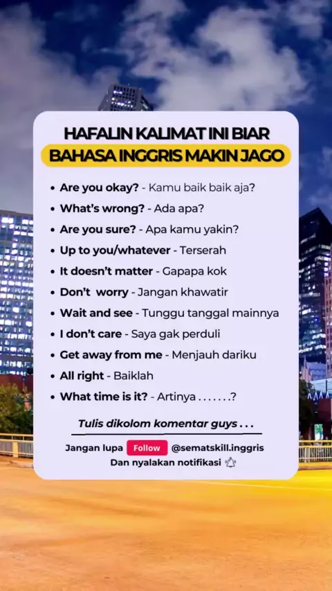 Hafalin kalimat ini biar bahasa inggris kamu makin jago#belajarbahasainggris#belajaronline#belajarbareng#english#inggris##sematskill