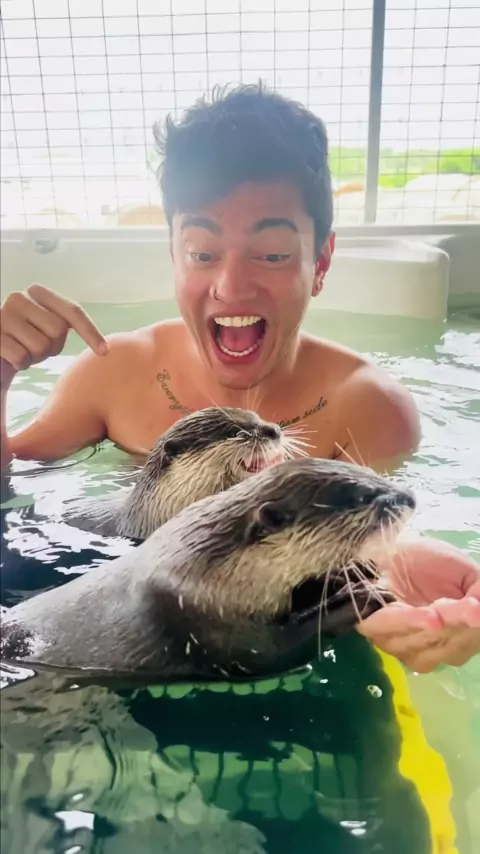 Banho com Lontras 🤏🏻🥰 #Vlog #iVlogou #Lontra #Lontras