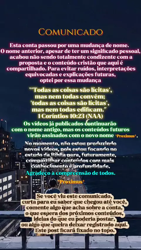 Apenas para deixar registrado. 1 Coríntios 10:23 ✝📖✝. Music by andrii g. from Pixabay. #Conta #Nome #Comunicado #Mudança #Deus