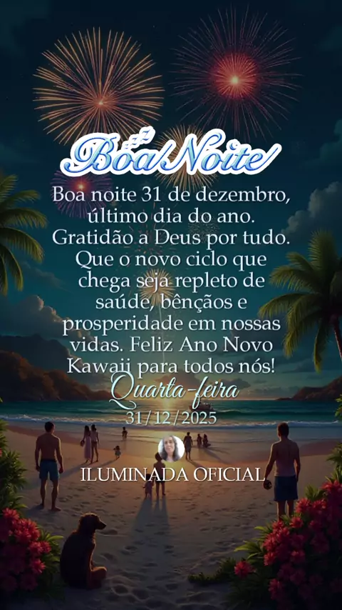 Boa noite 31 de dezembro último dia do ano gratidão a Deus e que este novo tempo que vai chegar chega chega e cheio de saúde muitas bençãos e muitas prosperidades sobre nossas vidas Feliz Ano Novo Kawaii