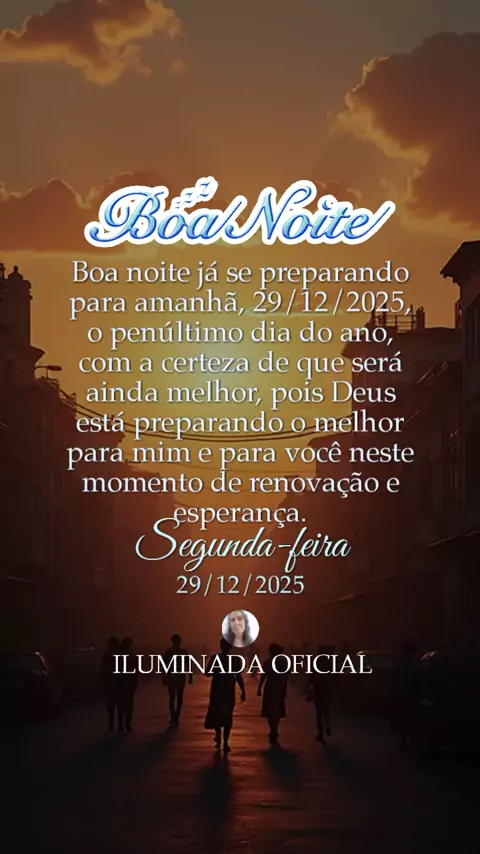 Boa noite já se preparando para amanhã que será o penúltimo dia deste ano na certeza que vai ser muito melhor porque Deus está preparando o melhor para mim e para você