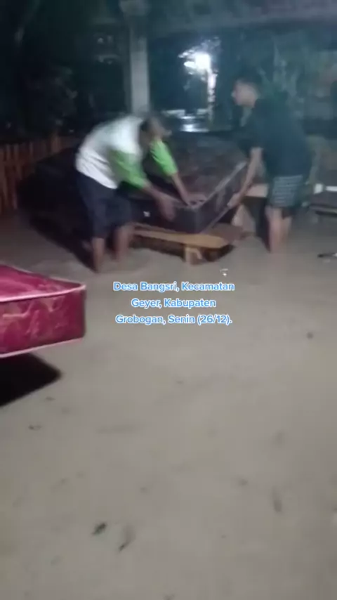 Banjir bandang menerjang 3 desa di Kecamatan Geyer, Kabupaten Grobogan, Senin(26/12/2022) sekitar pukul 18.00 WIB. Akibat kejadian tersebut 8 rumah hanyut dan beberapa rumah lainnya mengalami kerusakan dan perabotan rumah ikut hanyut. Demikian diungkapkan Kepala BPBD Kabupaten Grobogan, Endang Sulistyoningsih. "Banjir diakibatkan hujan deras mulai pukul 14.00-18.00 WIB. Sungai tidak mampu menampung air dari hutan dan meluap ke pemukiman. Di Kecamatan Geyer yang diterjang banjir bandang yakni D...