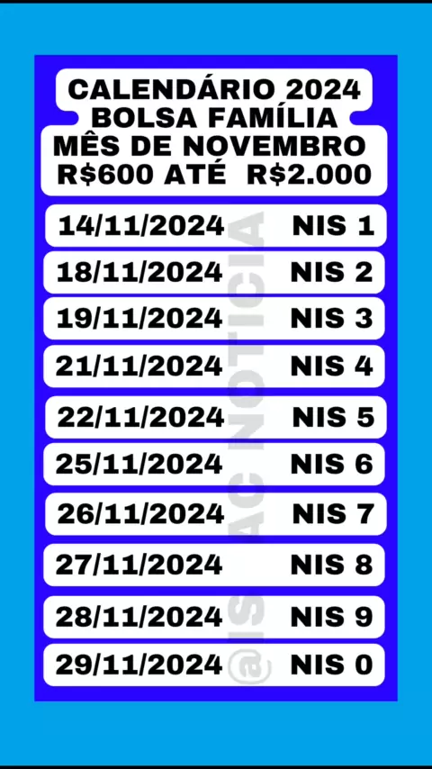 NOVO CALENDÁRIO DO BOLSA FAMÍLIA MÊS DE NOVEMBRO