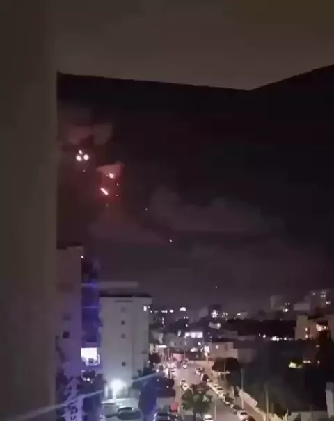 Um míssil carregado com uma série de submunições cai sobre a cidade. Nas colinas, algo queima após o impacto. Nenhuma atividade significativa de defesa aérea é observada: é possível que Israel tenha mudado para um modo de economia de mísseis. #2025internationalshortvideocompetition #USA #Israel #maisviews #war