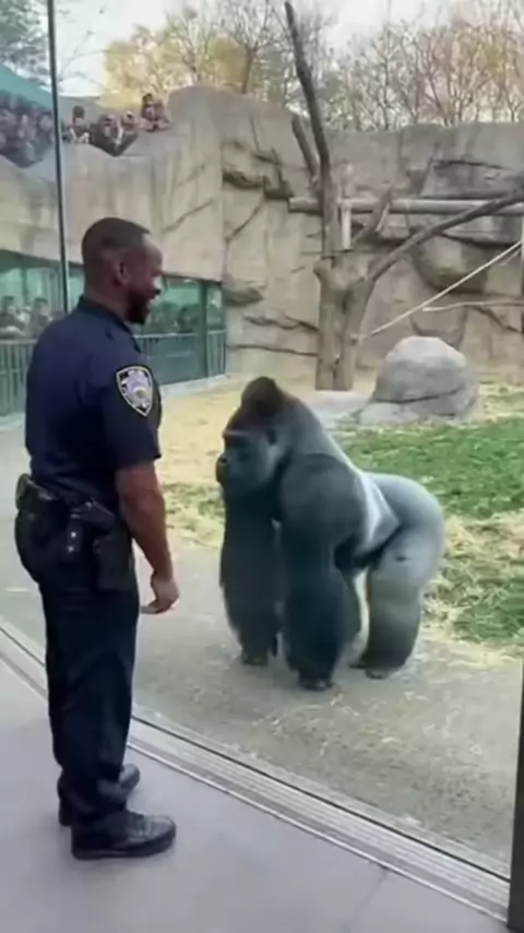 When the respect is mutual! 🦍👮‍♂️ Wait for that perfect landing! ⚠️ Disclaimer: Creative AI simulation - This scene is a digital creation for entertainment purposes only and is not a real-life event.#AICreative#GorillaFlip#ViralVideo#FunnyMoments#