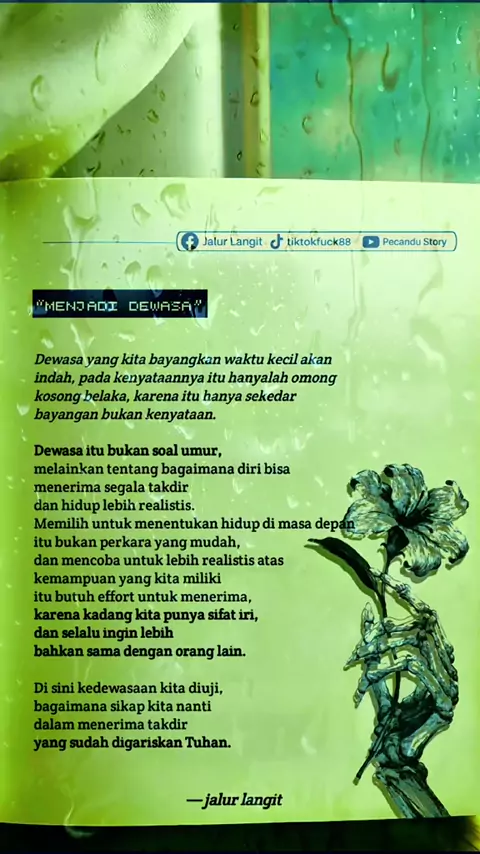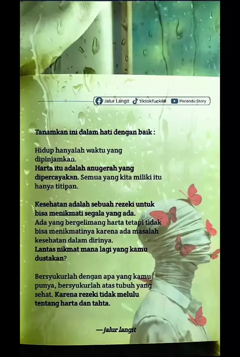 Kadang kita terlalu sibuk mengejar yang belum tentu bisa kita bawa mati, sampai lupa mensyukuri yang setiap hari masih kita nikmati. Padahal bernapas tanpa rasa sakit, bangun tanpa keluhan, dan masih diberi tenaga, itu sudah termasuk nikmat yang luar biasa. Belajar bersyukur bukan tentang merasa cukup, tapi tentang sadar bahwa banyak orang ingin berada di posisi sehat seperti kita hari ini.#selfreminder#katabijak#renunganhidup#bersyukur#jalurlangit
