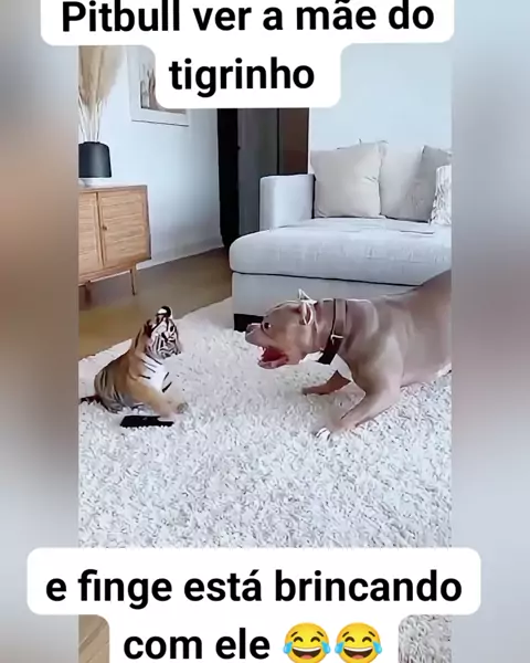 Pitbull ver a mãe do tigrinho e finge está brincando com ele 🤣🤣🤣 #viral #animal #pitbull #visualizar #viral