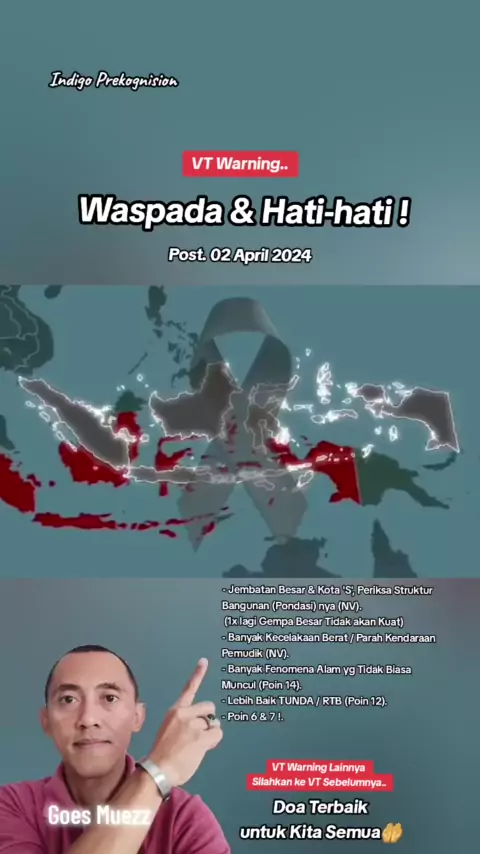 Selalu Waspada & Hati-hati ya🙏 Saling JAGA ! Saling PANTAU ! Saling MENGINGATKAN ! AMATI Gejala Tanda Alam yang Muncul tidak biasanya terjadi. * NV ; New Vision (Gambaran Baru) * VT Warning sebelum nya dari VT ini @Indigo Prekognision dan Vision yang baru masuk.. silahkan ke VT-vt sebelumnya🙏 DOA TERBAIK UNTUK KITA🤲 #goesmuezz #prekognision2024 #prekognisi #indigoprekognision #indigoprekognisi # # #rakyatmelihat #indonesia #aussie #australia