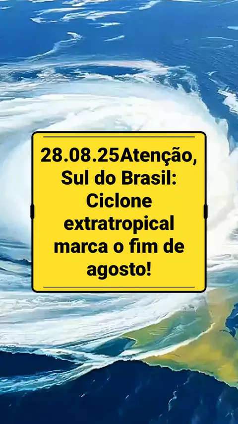 28.08.25 Atenção, Sul do Brasil: Ciclone extratropical marca o fim de agosto! O mês termina com alerta máximo para a Região Sul! Um novo ciclone extratropical se forma nos próximos dias, trazendo ventos fortes, chuva intensa e mudanças bruscas no tempo. Gaúchos, catarinenses e paranaenses precisam ficar atentos às atualizações meteorológicas. 🌪️🌧️ #Ciclone #AlertaSul #TempoBrasil #PrevisãoDoTempo #ClimaBrasil
