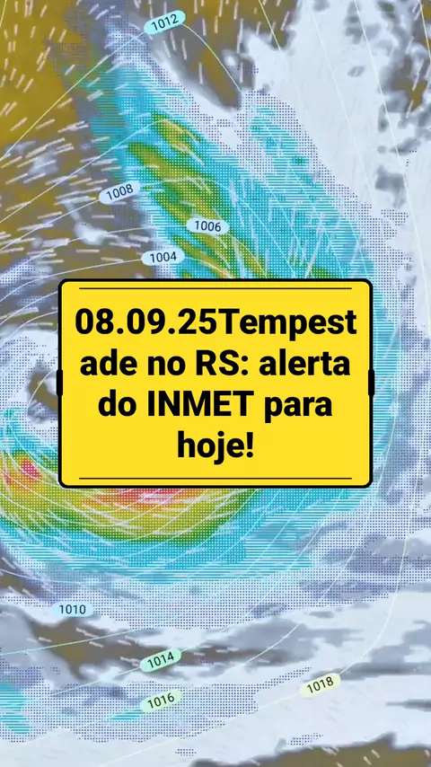 08.09.25 Tempestade no RS: alerta do INMET para hoje! atenção! 🚨 O INMET emitiu alerta de tempestade para esta segunda-feira, 8 de setembro, com chuva forte, ventos intensos e risco de granizo em várias regiões do Rio Grande do Sul. E aí, como está o tempo na sua cidade hoje? 🌧️🌪️ #PrevisãoDoTempo #RioGrandedoSul #Tempestade #AlertaINMET