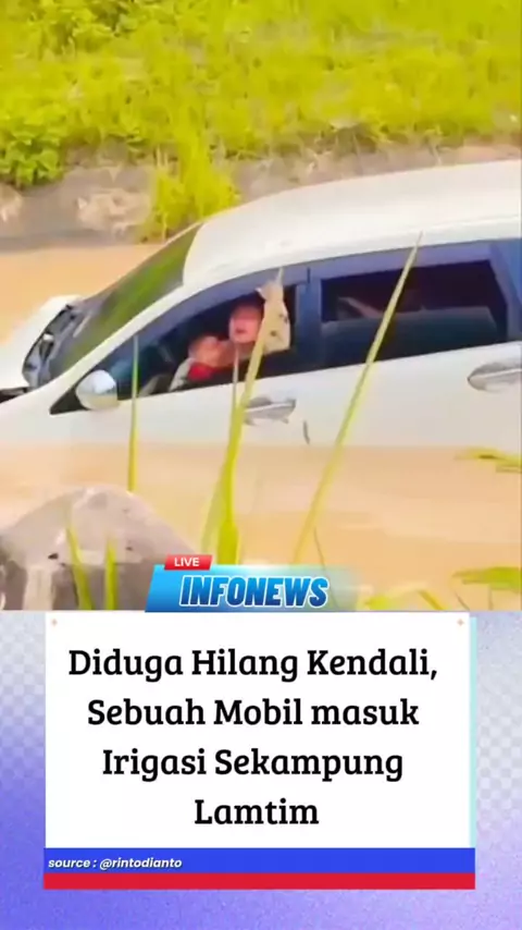Diduga Hilang Kendali, Sebuah Mobil masuk Irigasi Sekampung Lamtim #sopir #lamtim #lampungtimur #sekampung #BeritaLokal