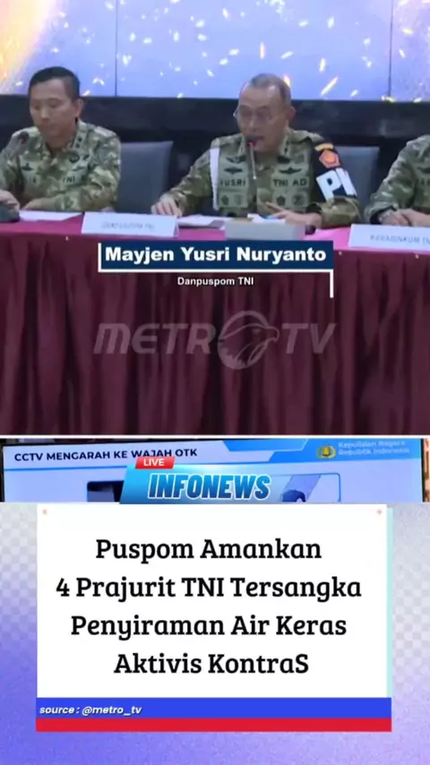 Puspom Amankan 4 Prajurit TNI Tersangka Penyiraman Air Keras Aktivis KontraS #BeritaLokal #oknumtni #KONTRAS #aktiviskontras