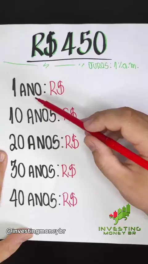 Você já se perguntou o que aconteceria se investisse um valor fixo todo mês, religiosamente, e deixasse os juros trabalharem por você? Neste short, fazemos uma simulação PODEROSA e REALISTA para te mostrar como a paciência e a disciplina são os maiores aliados de um investidor. Vamos simular o que acontece se você investir R$ 450,00 por mês (um valor que muita gente consegue guardar) a uma taxa de 1% ao mês. #investimentos #juroscompostos #educacaofinanceira #dinheiro #riqueza