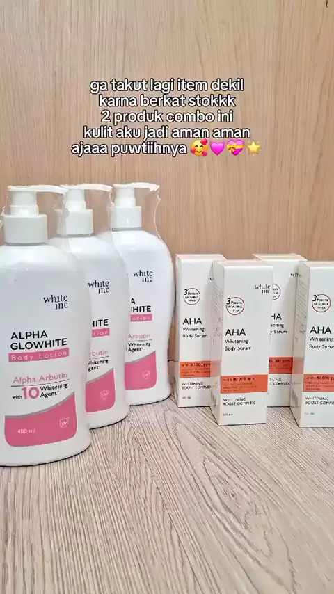 Cuma modal 2 produk doang bisa bikin glowing‼️😍💖✨ #lotionpencerahkulit #lotionviral #hbpemutihbadan #whiteinc #whiteincbodylotion #ahawhiteinc #lotionviral #alphaarbutin #ahawhiteningbodyserum #tokokosmetik #lotionpemutih #aha #tipsglowing #tipskulitcerah