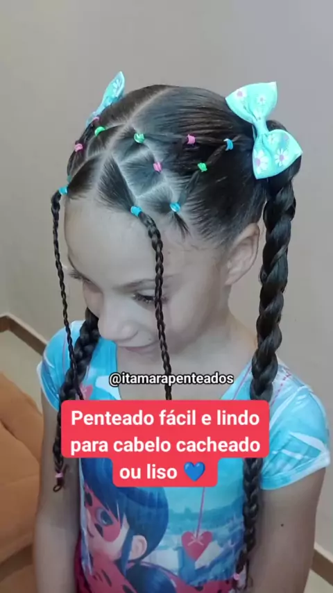 Esse penteado fica lindo em cabelo cacheado ou liso 💙 #OiTube2 #penteado #penteadoinfantil #penteadofacil