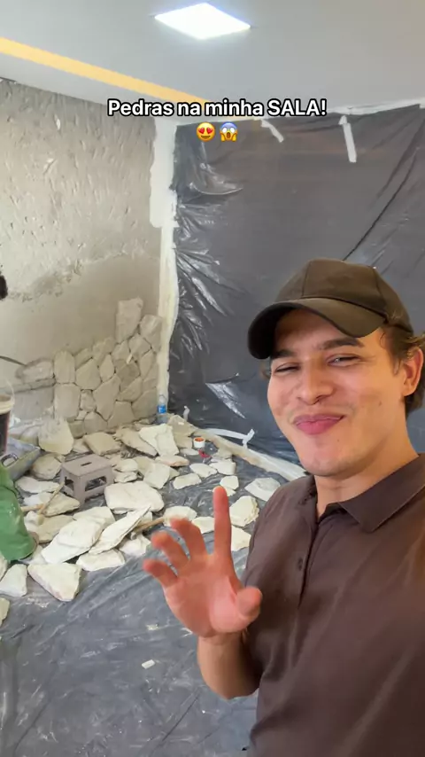 Colocando pedras na parede da minha sala!