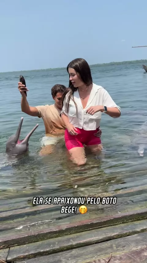 Ela se apaixonou pelo boto-cor-de-rosa!