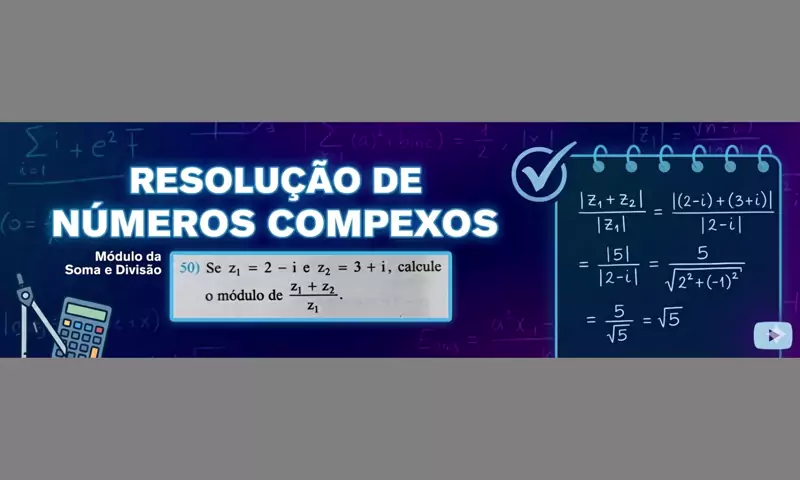 Descomplicando os Números Complexos! 🧠🔢 Você sabe como calcular o módulo de uma expressão que envolve soma e divisão de complexos? No vídeo de hoje, eu mostro o passo a passo para resolver essa questão clássica de forma simples e direta, usando as propriedades que facilitam a vida na hora da prova. Não esquece de salvar para revisar depois e marcar aquele amigo que também está na luta com a matemática! 🚀 Hashtags: #Matematica #NumerosComplexos #Estudos #Vestibular #DicasDeEstudo