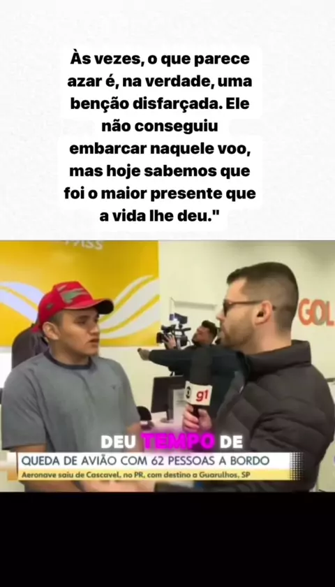 "Nem sempre entendemos os planos da vida, mas às vezes um atraso pode salvar o futuro."