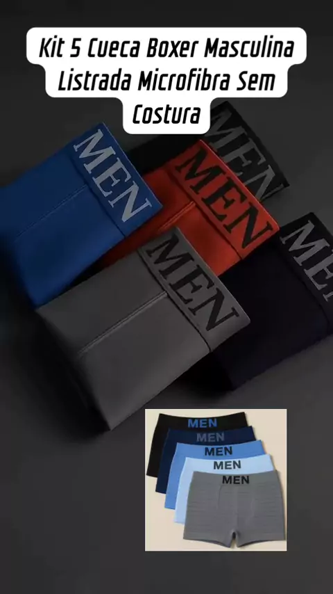 Kit 5 Cueca Boxer Masculina Listrada Microfibra Sem Costura