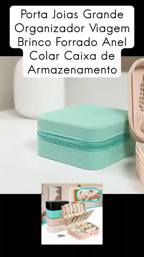 Porta Joias Grande Organizador Viagem Brinco Forrado Anel Colar Caixa de Armazenamento