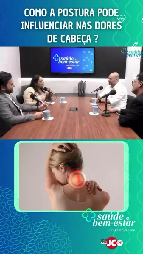 SAÚDE | A postura influencia nas dores de cabeça? No videocast #SaúdeeBemEstar, apresentado pela colunista de saúde do JC, Cinthya Leite, você confere uma conversa esclarecedora com os especialistas Eduardo Aquino (neurologista), Eduardo Vieira (fisioterapeuta) e Corintho Viana (osteopata e otorrinolaringologista). O videocast é ao vivo, toda quarta-feira às 20h no Youtube da JC Play. Episódios já disponíveis. #Doresdecabeça #jm #im #mr