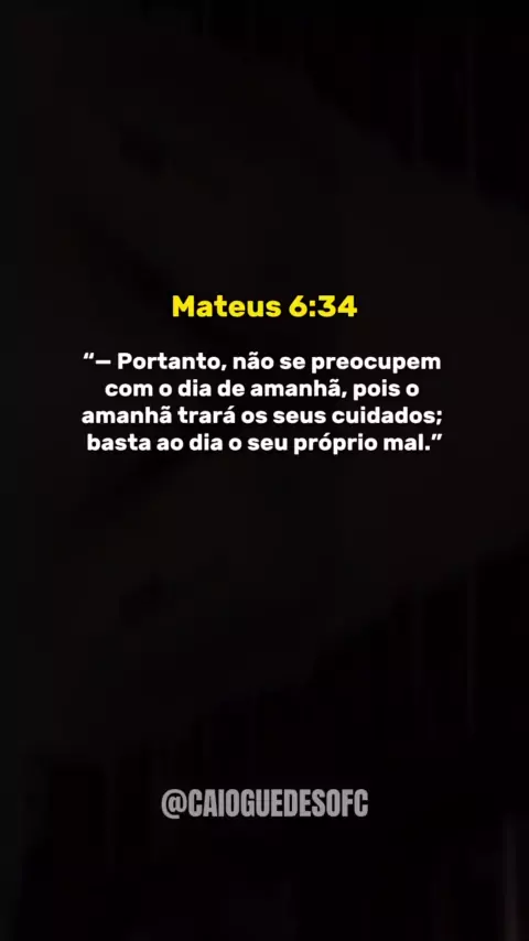 @ Mente_blindada 👑 É bem desafiador viver esse versículo, não é? Certamente, mas precisamos ser obstinados. A instrução de Jesus não intui nos aconselhar a sermos negligentes com o futuro ou com o que pode acontecer, mas a não andarmos preocupados ou ansiosos com o por vir. Sendo assim, expressões como ou ideias semelhantes a “bom, basta o mal de cada dia, não é? Não tem porquê pensar no amanhã” ou “deixa a vida me levar”, caem completamente por terra. Afirmo, elas não são certas.