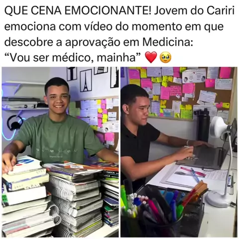 Um jovem do Cariri viralizou nas redes sociais ao compartilhar o emocionante momento em que descobre sua aprovação no curso de Medicina. No vídeo, ele comemora aos prantos e grita: “Vou ser médico, mainha!” A cena comoveu milhares de internautas. (Reprodução: Internet)