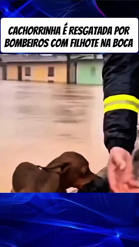 CACHORRINHA É RESGATADA POR BOMBEIROS COM FILHOTE NA BOCA #noticias #reportagem #News