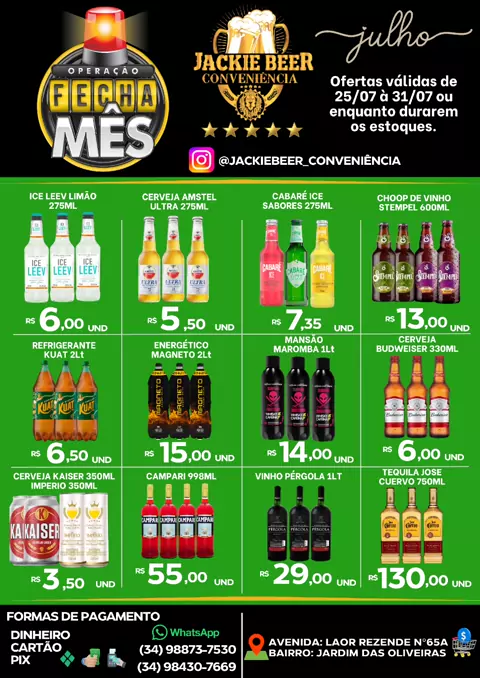 No Jackie Beer, aqui bebida gelada é garantido. Temos Carvão, água, bebidas em geral, carnes, mandioca, produtos de mercenária e muito mais...