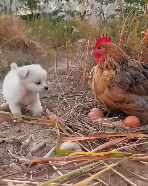A galinha levou o cachorrinho #animais