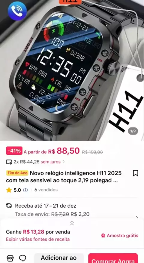 Relógio inteligente de luxo por menos de R$100 😱⌚️ corre antes que acabe!#tiktokshop #tiktokchop #relogiointeligente #smartwatch #ofertadodia