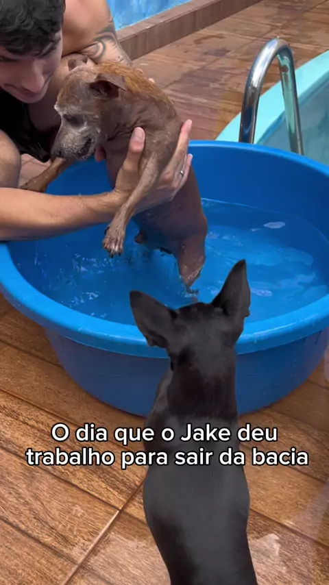 Ficou revoltado por ter que sair, disse que 20 minutos é muito pouco 😂😂#cachorro #jakenapiscina #cachorronapiscina #pinscher