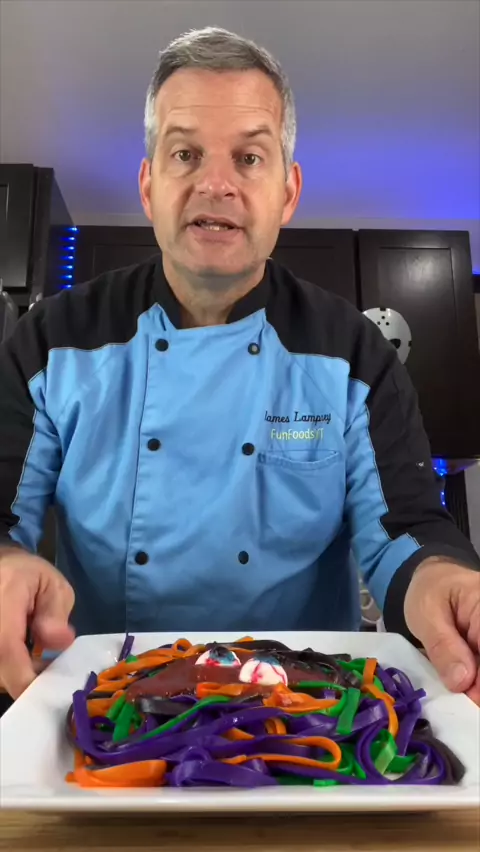 Spooky Spaghetti See how to make this spooky Halloween pasta. Perfect for a Halloween meal. #Halloween #pasta #foodie