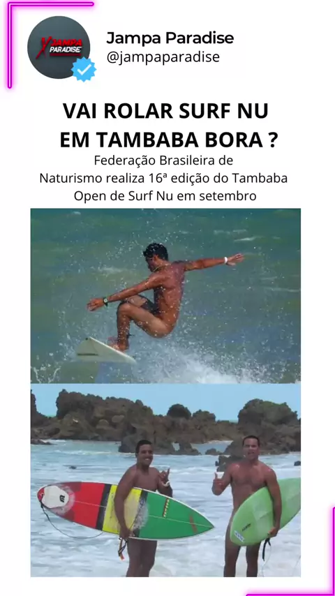 Eu só não participo porque não sei surfar, e você teria coragem ? Acontece nos dias 6 e 7 de setembro o tradicional Tambaba Open de Surf Nu, organizado pela Federação Brasileira de Naturismo (FBrN) e Sociedade Naturista de Tambaba (Sonata). Em sua 16ª edição, o evento esportivo atrai surfistas de todo o país à praia de Tambaba no município de Conde, na Paraíba. #surf #jampaparadise #passeios