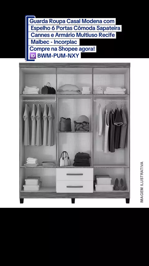 Dê uma olhada em Guarda Roupa Casal Modena com Espelho 6 Portas Cômoda Sapateira Cannes e Armário Multiuso Recife Malbec - Incorplac Compre na Shopee agora! 🆔️ BWM-PUM-NXY https://s.shopee.com.br/qeC0jYr68?share_channel_code=1 #decoracao #quartoinspiracao #organizacao #moveis #casaorganizada