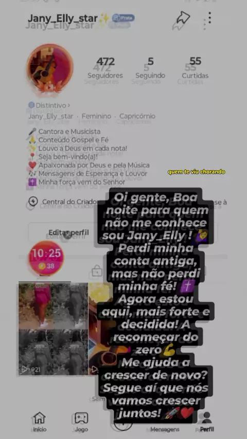 🎤 Cantora e Musicista 🙏 Conteúdo Gospel e Fé ✨ Louvo a Deus em cada nota! 📍 Seja bem-vindo(a)! ❤️ Apaixonada por Deus e pela Música 🎶 Mensagens de Esperança e Louvor ✝️ Minha força vem do Senhor