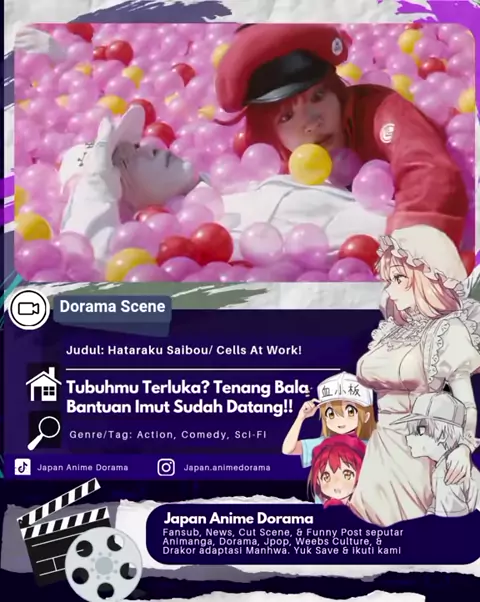 [🎬#JAD_DoramaScene] Pertempuran terbesar tak selalu di medan perang... kadang justru di dalam tubuh manusia! Siap-siap, karena sel-sel tubuhmu bakal beraksi! Mereka kecil, imut, tapi punya tugas besar—platelet! Ketika luka muncul, merekalah yang pertama datang menyelamatkan! ◽◽◽◽ 🅰️ Judul: Hataraku Saibo / はたらく細胞 📺 Genre: Action, Comedy, Sci-Fi, Fantasy 🏷 Tags: Anthropomorphic Characters, Inside-the-Body Setting, Adapted from Manga, Teamwork, Wound Healing, Platelet Cuties 🎭 Pemeran: 🔹 Na...