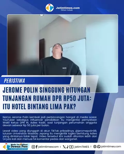 Nama Jerome Polin kembali jadi perbincangan hangat di media sosial. r sekaligus influencer pendidikan itu mengkritisi pernyataan Wakil Ketua DPR RI, Adies Kadir, soal tunjangan perumahan anggota dewan sebesar Rp 50 juta per bulan. #dprri #tunjanganrumah #jerome #ketuadprri #jeromepolin