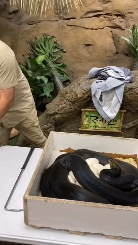 This is how we make panda pieds ๐Ÿผ but this mom is a little grumpy ๐Ÿ˜† #snake #animal #amaKwai