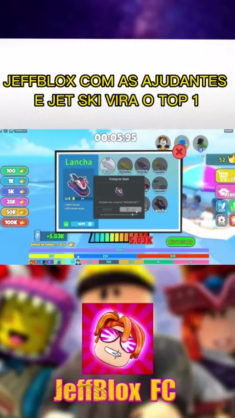 JEFFBLOX VIRA TOP 1, COM A AJUDA DAS AJUDANTES E DO JETSKI. #JeffBlox #roblox #gameplay #gamer #games