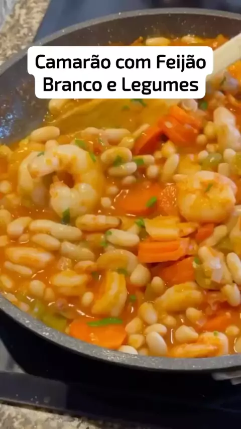 Camarão com Feijão Branco e Legumes #maisviews #kwai #Comida #viral #Receita