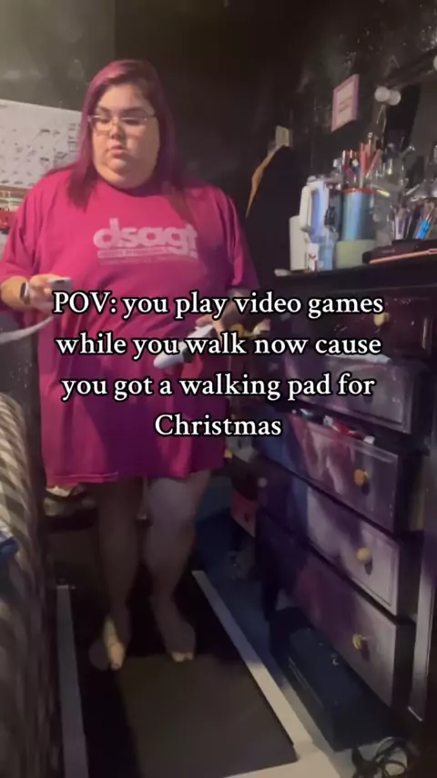 Tão fácil de obter 10k passos com esta coisa agora. Agora ouça, eu não estou andando como super rápido. Eu estou literalmente andando em 1.0 e se algo intenso no jogo acontecer eu vou descer para .5 para não cair. Se você fizer isso, seja cauteloso!!! É fácil se distrair e cair. Buuuut esta foi uma maneira tão fácil para mim para obter passos em! Acabei por terminar este videojogo da Bratz desta forma! Eu realmente amo esta almofada de caminhada. # walkingpad # walkingpadtreadmill # walking # w...
