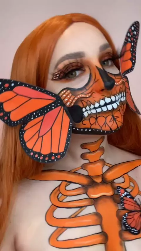 LET’S TAKE IT ALL OFF 🧡#makeupremoval#crazymakeup#mua#sfxmakeup#skullmakeup#bodypaint#butterflymakeup#nailart#facepaint#Inverted#butterfly